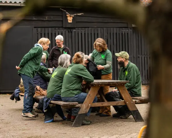 Bij de Boswerf zijn ongeveer 35 vrijwilligers actief op allerlei gebieden. Er is een tuinteam, een klusteam, een team van gastheren en gastvrouwen en een educatieteam. Nikki: “We geven veel les aan scholen. Het educatieteam vangt die scholen op en vertelt van alles over het bos. We hebben een heel diverse groep. Er zijn gepensioneerden met veel liefde voor de natuur, maar ook mensen die re-integreren of vastgelopen zijn in hun werk. Verder hebben we ook veel jonge mensen die bijvoorbeeld een kantoorbaan hebben, maar daarnaast wat meer buiten willen zijn.”